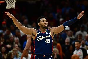 骑士主将米切尔本场比赛状态火热,上半场他就轰下25分帮助球队反超比分,下半场他帮助球队巩固优势拿下胜利。