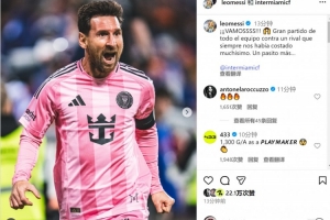 梅西赛后在社交媒体上晒照庆祝胜利,配文:“太棒了!全队发挥出色,击败了总是让我们陷入苦战的对手,又向前迈出一步!”