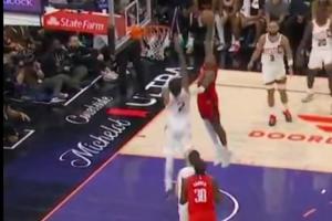 哈登助科林斯暴扣但被吹进攻犯规在先 快船挑战成功改吹防守犯规